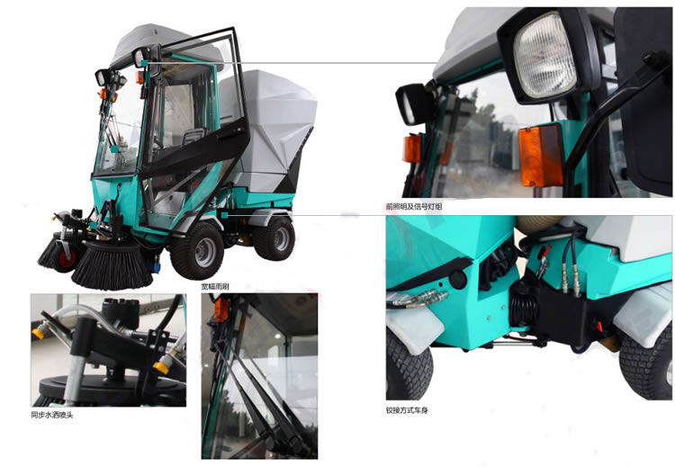 鏈接方式讓操控更為出色靈活,緊湊設計讓這款機器可輕松在極為狹窄的路面和空間內工作,流線型外觀,美觀小巧,轉向靈活,能在狹窄彎曲的非機動車及人行道上清掃自如。